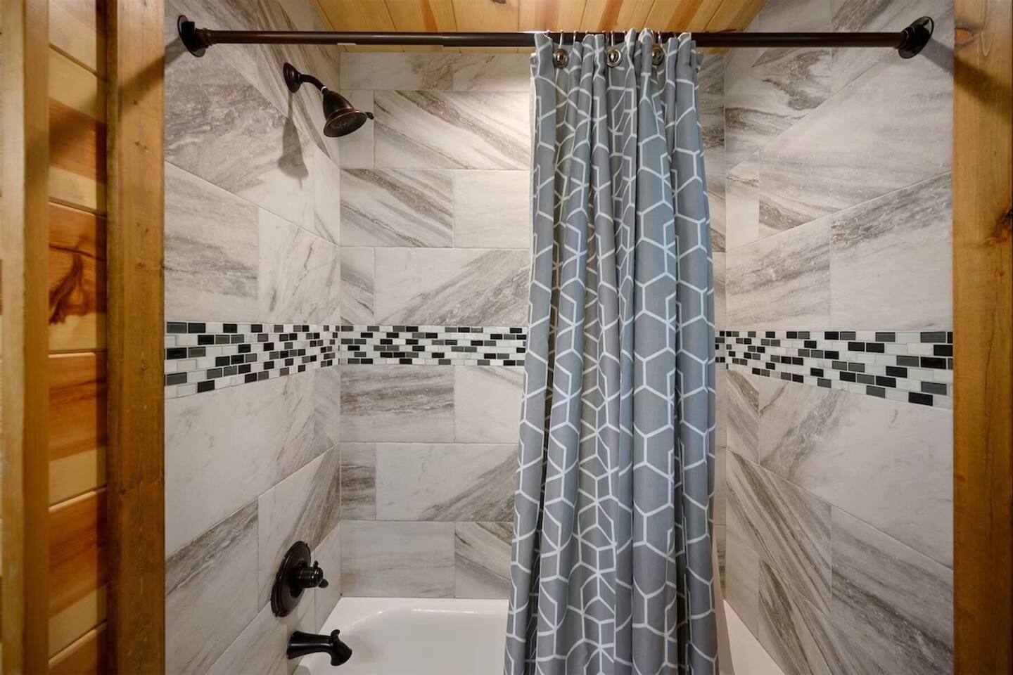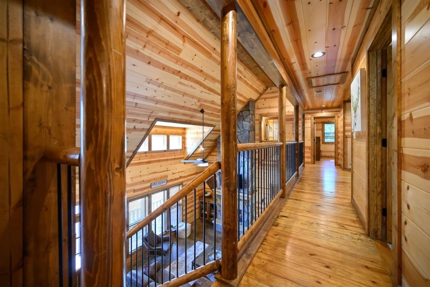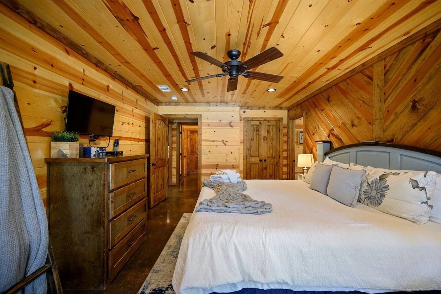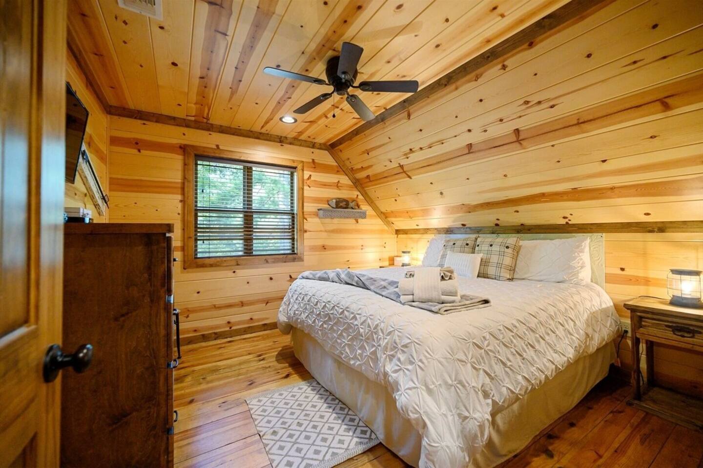 **THE LAYOUT:** 5 bedrooms, 4 baths, sleeps 14. King suites + bunk room. Game room. Hot tub. Fire pit. All on a wooded lot surrounded by pines. **BEDROOMS:** - Master suite — king bed, private bathroom - Bedroom 2 — king bed, private bathroom - Bedroom 3 — king bed, private bathroom - Bedroom 4 — king bed, shared bathroom - Bunk room — multiple bunks, perfect for kids or extra guests **LIVING & KITCHEN:** Open-concept living area with plenty of seating for the whole group. Fully equipped kitchen with everything you need to cook for a crowd — coffee maker, full-size fridge, oven, dishwasher, and all the basics (pots, pans, plates, utensils). Dining area seats the full group. **GAME ROOM:** Dedicated space for rainy days, late nights, and family tournaments. Your crew will spend more time here than you expect. **OUTDOOR SPACES:** - Private hot tub — soak under the stars surrounded by pines - Fire pit — bring marshmallows, we provide the seating - Spacious deck — morning coffee with nothing but trees and fresh air - Wooded lot — feels secluded, but minutes from everything **FULLY STOCKED BATHROOMS:** Every bathroom has shampoo, conditioner, body wash, hand soap, and fresh towels. Just pack your toothbrush. **EXTRAS:** - Keyless self check-in - High-speed WiFi - Washer and dryer - Pet-friendly (let us know in advance)