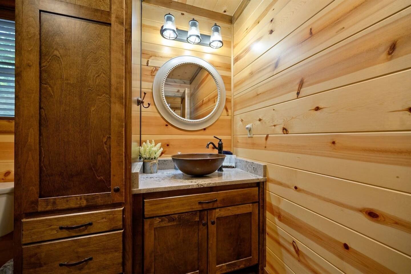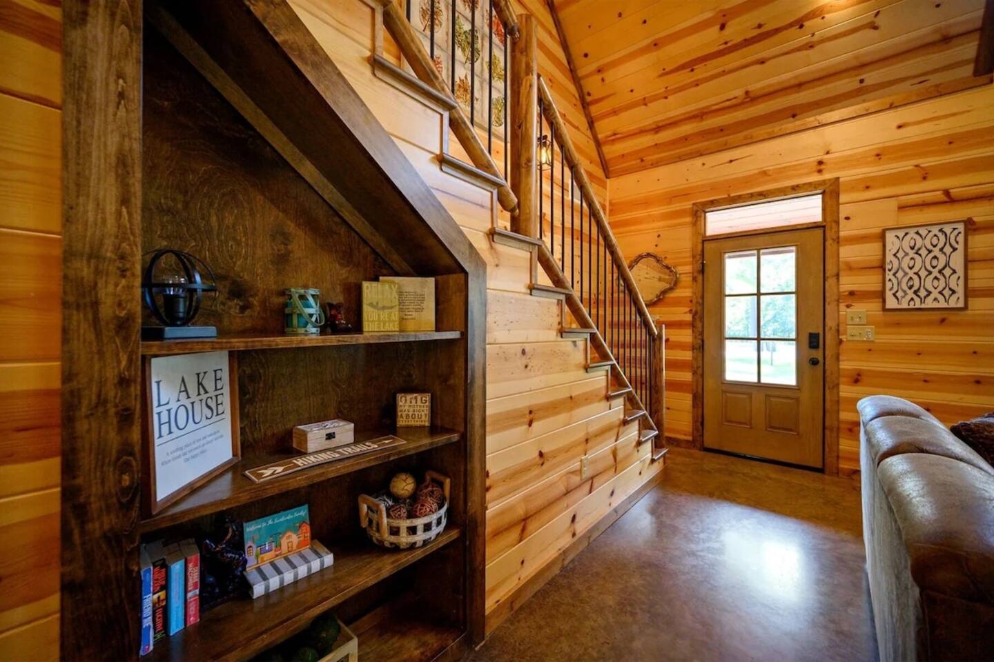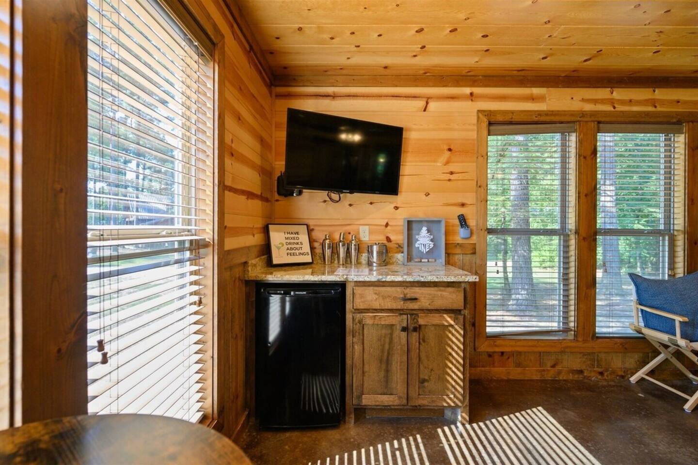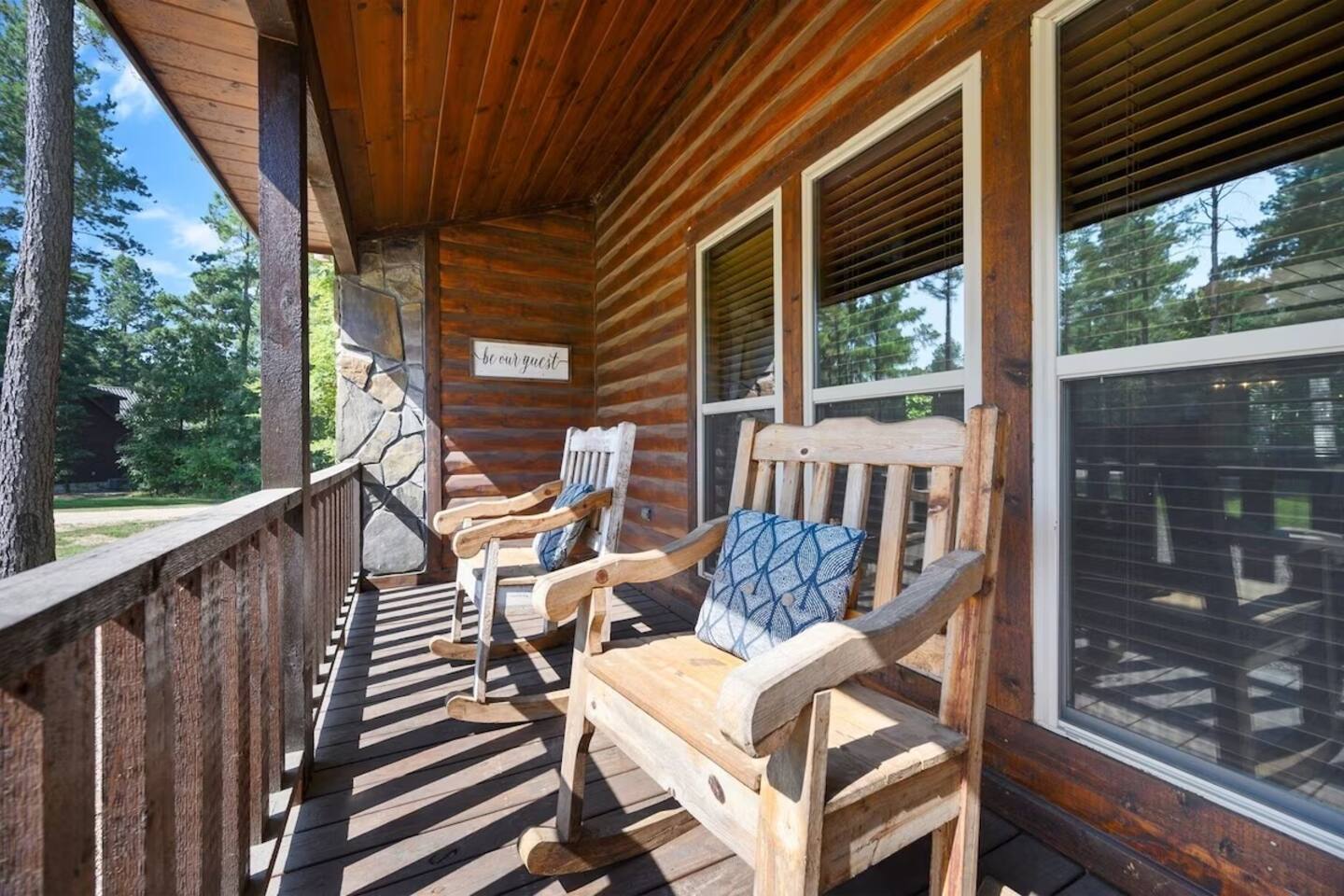 The property is surrounded by tall pines on a quiet, wooded lot. It feels very private and secluded, but you're just a short drive from Beavers Bend State Park, Broken Bow Lake, and the restaurants and shops in Hochatown. Roads are paved and well-maintained. Cell service is reliable and WiFi is available throughout the cabin. Guests arriving after dark — the cabin is easy to find and the porch light will be on for you.